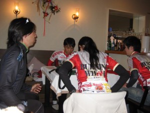 ペンションに戻ってきて、学校の生徒さんでもあり、TTに出る筈だった方々と急遽「プチ教室」を開催。