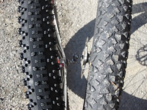 右が今まで履いていた(というよりも、今でも履いている)コンチネンタルのレースキング2,2.